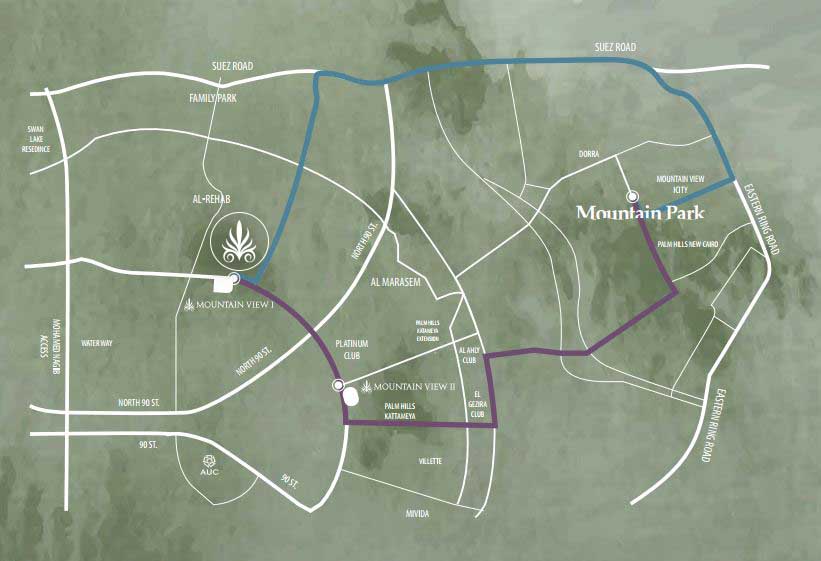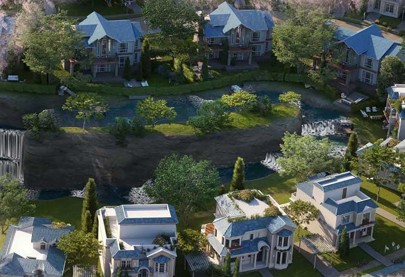 المشروع على ارتفاع 300 متر فوق مستوى سطح البحر حيث تقع الفيلات بأعلى منطقة فى ماونتن بارك بإطلاله على سنترال بارك الغني بالمناظر البانورامية